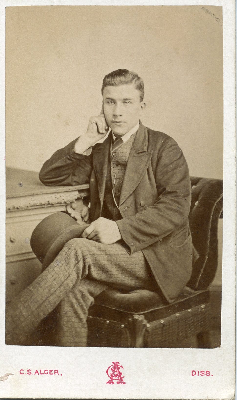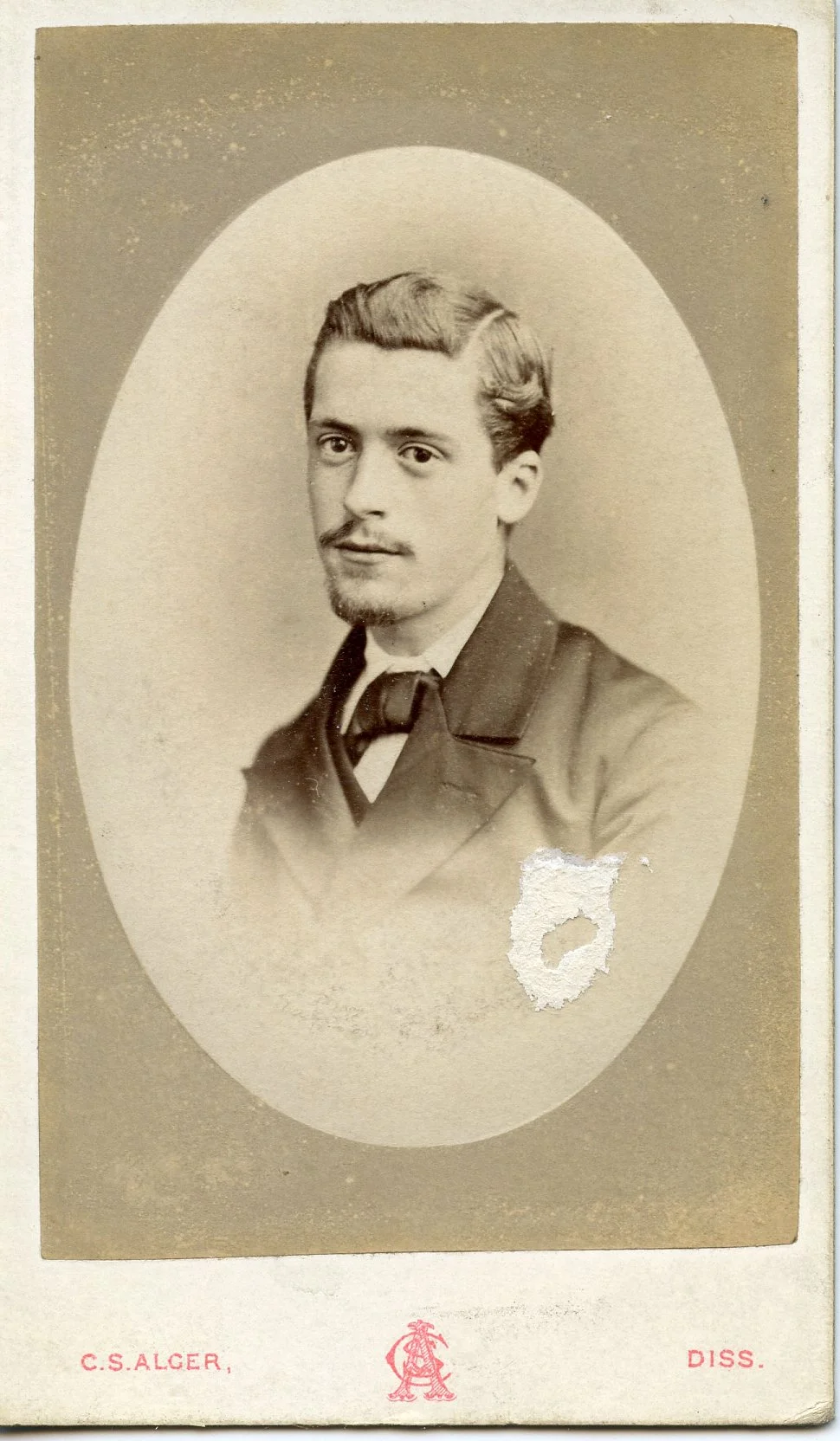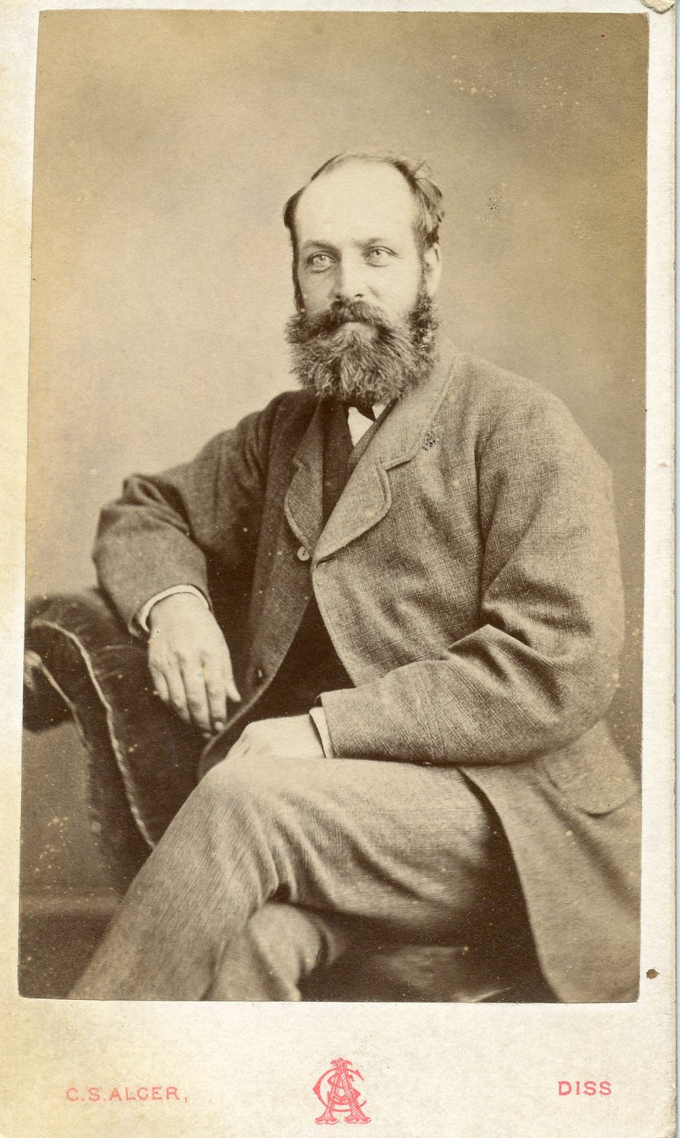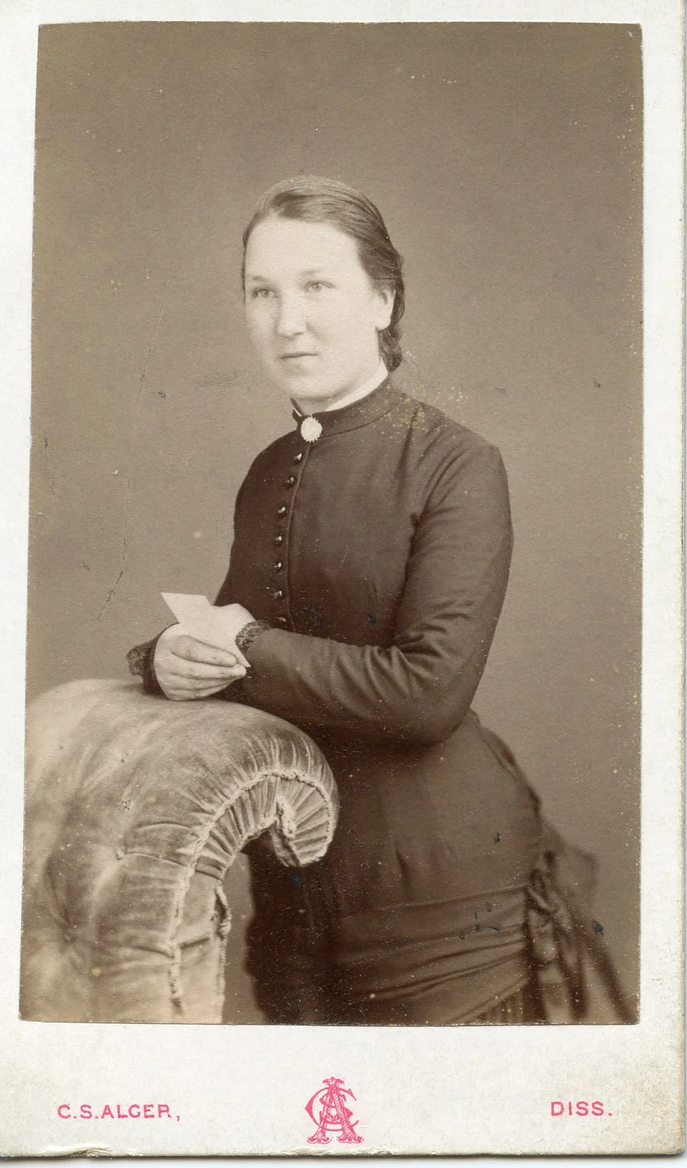Cleer S. Alger Sr & Jr. took photos from their location on Mere Street in Diss from 1871 - 1904. I thought this could have been William with Margaret & Alice, but in 1861, Margaret would have been 7 so not possible. The simplicity of the logo makes me think its from the 1870s.
