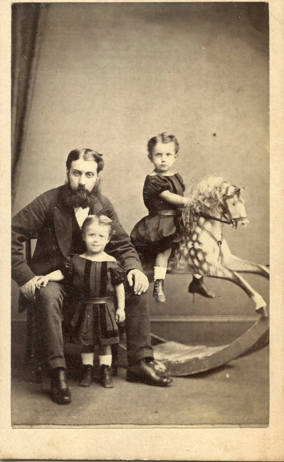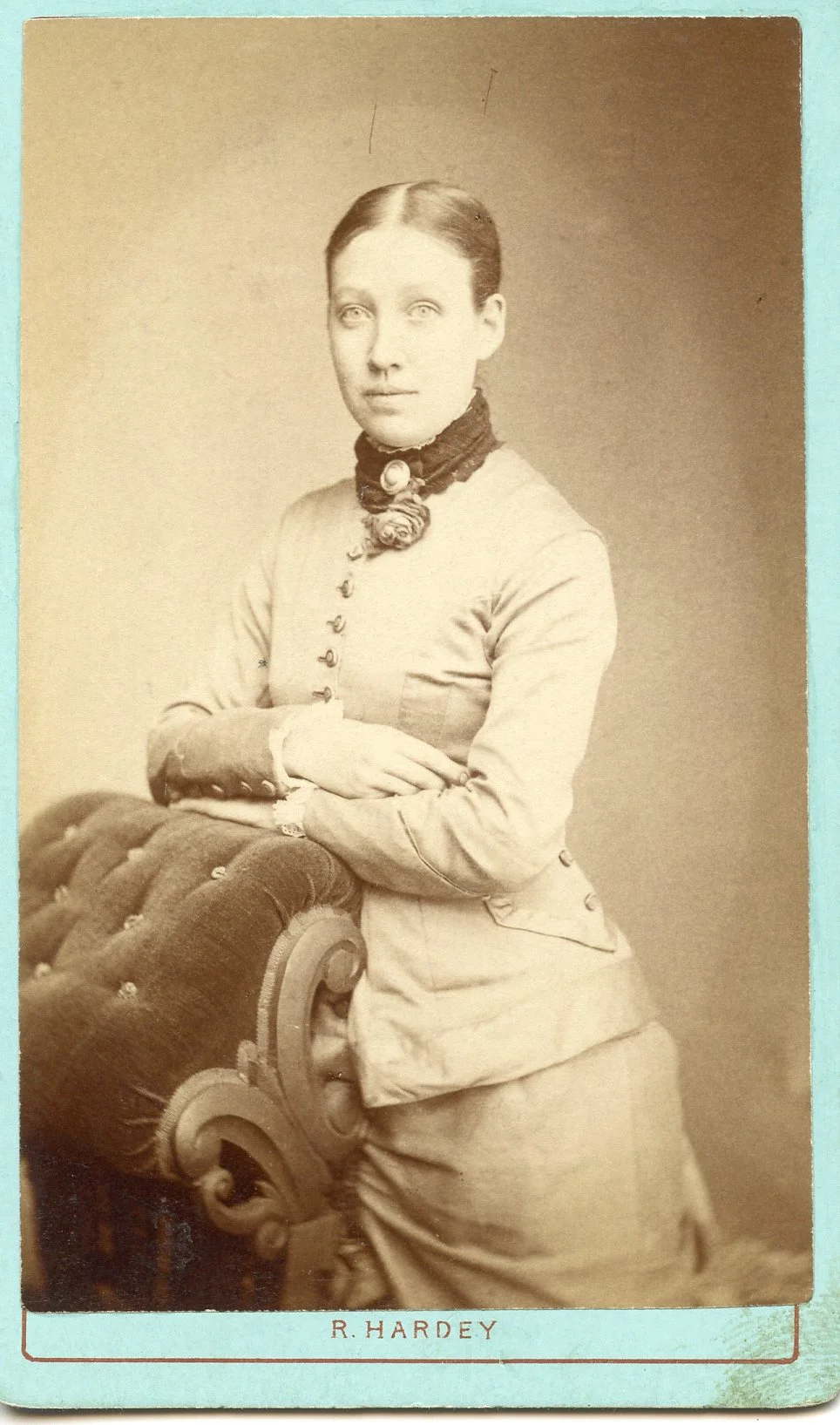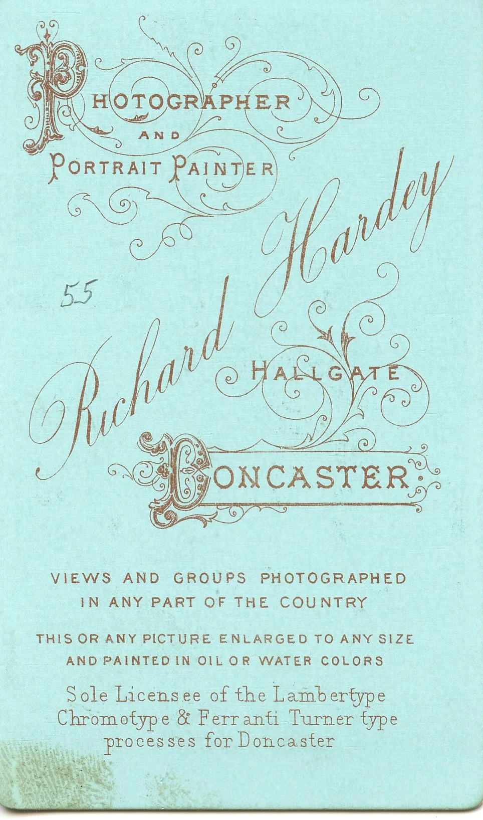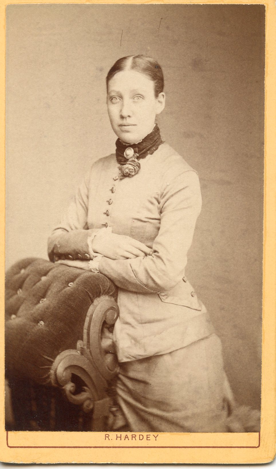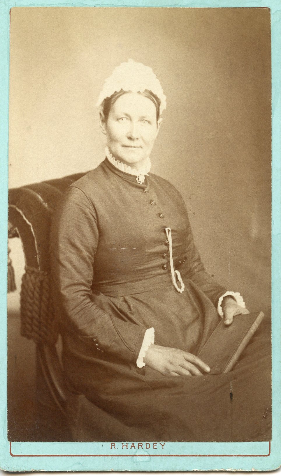 Richard Hardey Doncaster Photographer. Took over the business of James Walker in 1868. In 1882 he sold the premises. The man looks a LOT like John Vince (1816-1894) which would make the woman Amelia Harvey but then the young girl unknown.