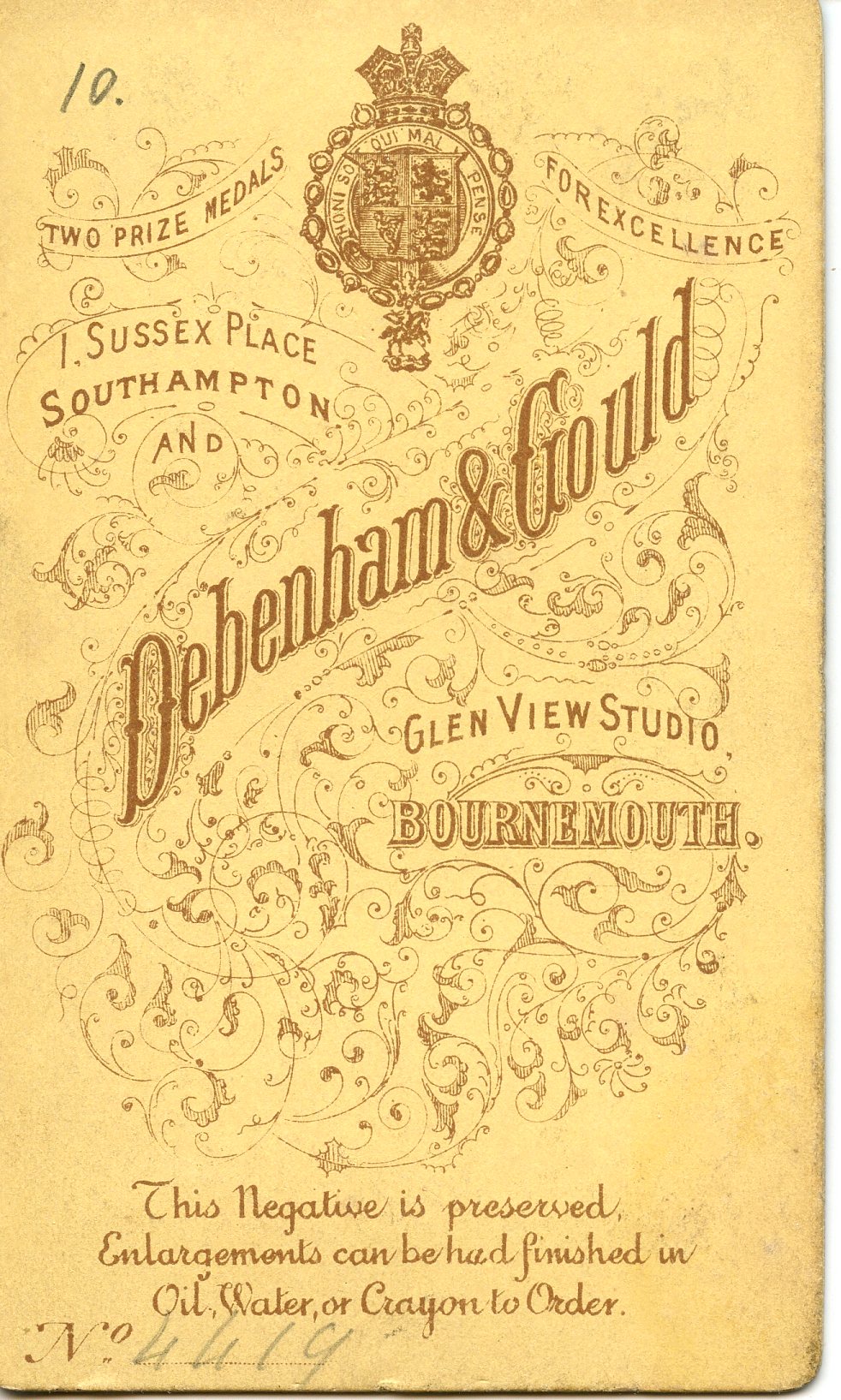 Debenham & Gould Bournemouth. I Sussex Place Southampton & Glen View Studio Bournemouth. Circa 1898-1935